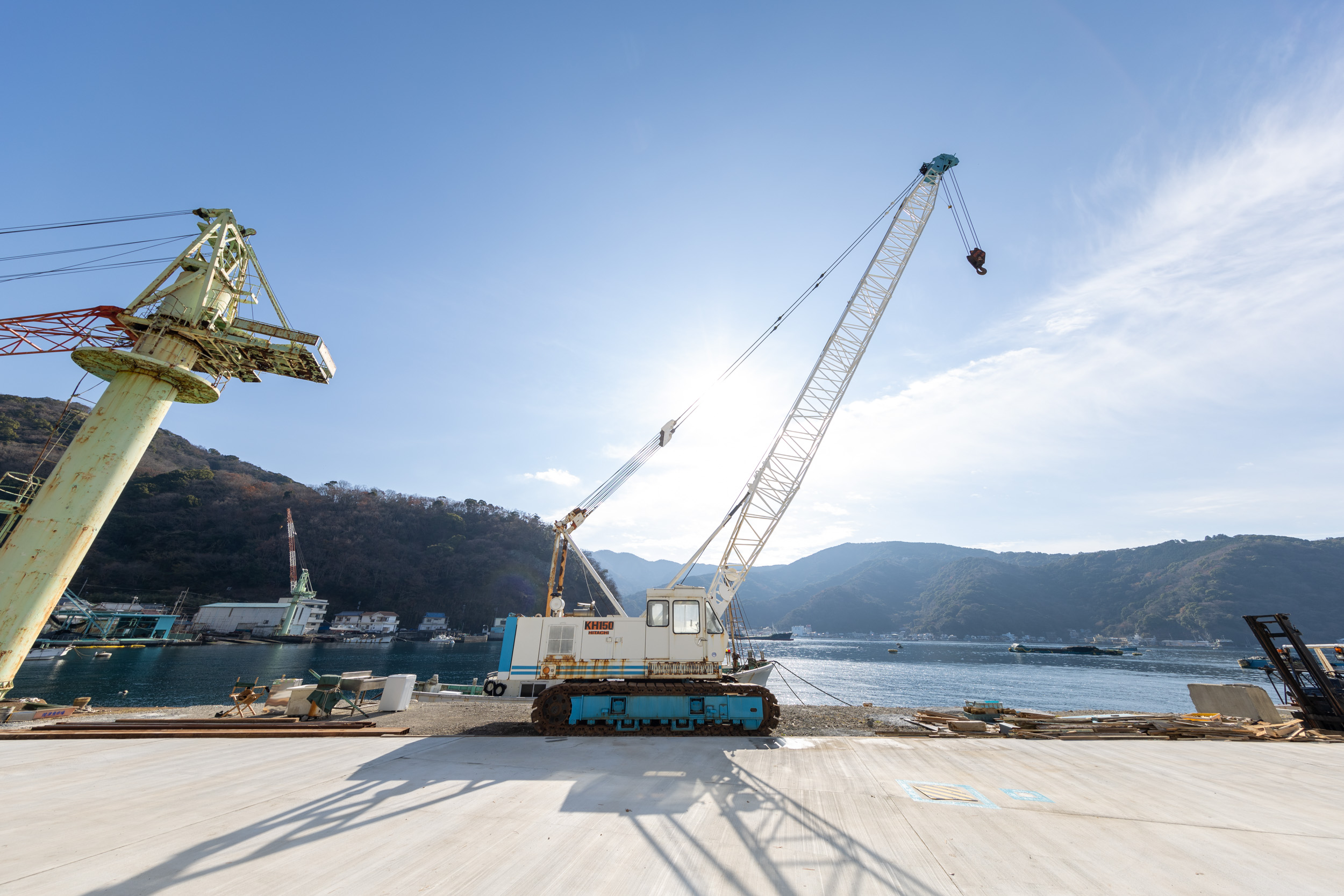 10~20隻艇を陸揚保管が可能なボートヤードがあります。ボートの上下架には45tのクローラークレーンを使用します。